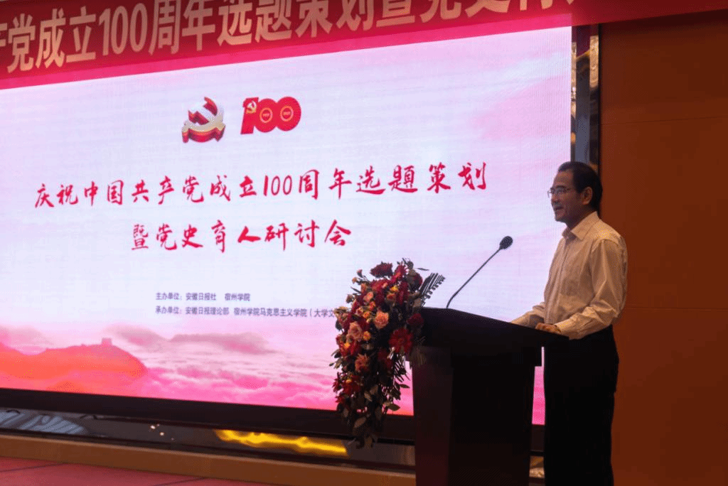 为庆祝中国共产党成立100周年,5月15日,由安徽日报社、宿州学院主办,安徽日报社理论部、宿州学院马克思主义学院(大学文化研究中心)承办的庆祝中国共产党成立100周年选题策划暨党史育人研讨会举行。宿州学院党委副书记、院长张莉,安徽日报社副总编辑计永超,以及宿州学院党委委员、宣传部部长李真,安徽日报理论部主任任诗芹,安徽日报评论部主任曹显钰等出席会议,来自皖北片10所高校的马克思主义学院的领导、专家、思政课教师代表40余人参加会议。会议由宿州学院马克思主义学院院长李玉才主持。