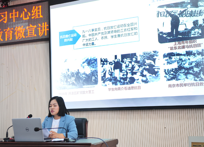 为丰富党史学习教育形式,推动党史学习教育提质增效,5月21日下午,我院在逸夫楼第二会议室召开党委理论学习中心组(扩大)学习会暨党史学习教育微宣讲报告会,我院马克思主义学院余晓宏、陈晓声、项洋、李焕四位老师作党史学习教育微宣讲报告,院领导汪刘送、张莉、蔡之让、李亮、梁琦、张英彦、王俊,院党委理论学习中心组全体成员,全院副处级以上干部参加报告会。报告会由院党委副书记蔡之让主持。