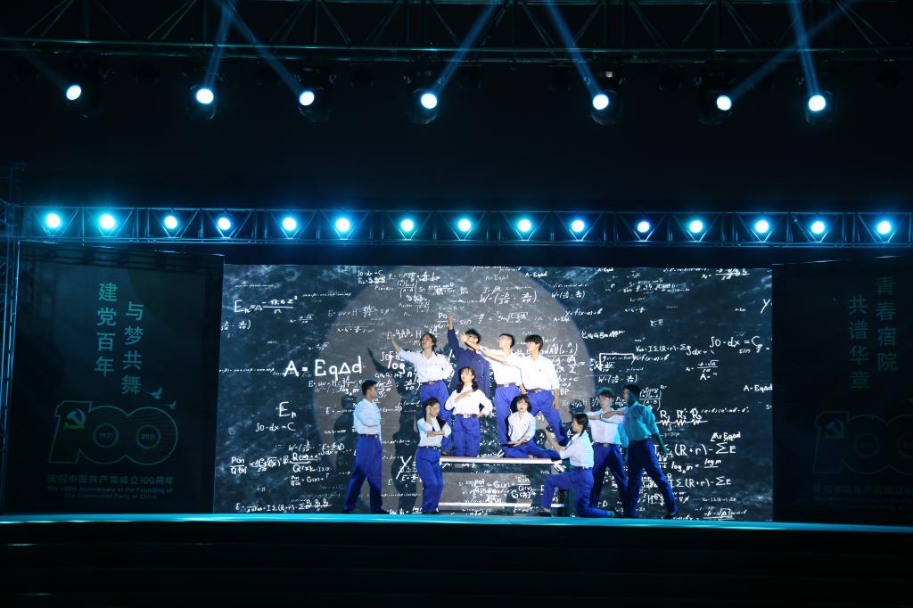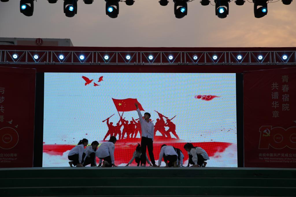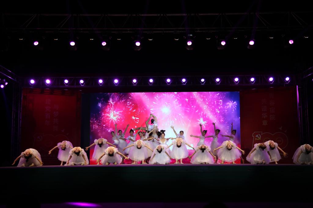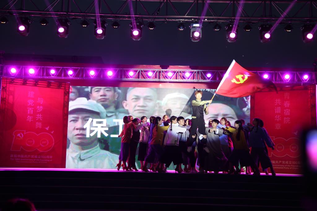 比赛现场,来自全院21支参赛队伍大展身手,各显神通,为观演师生献上了一场精妙绝伦的视觉盛宴。绚丽的舞姿,璀璨的灯光,宿院学子们用精心创作的舞蹈作品展示了中国共产党百年峥嵘岁月与奋斗历程,共同感受一代代共产党人对初心的坚守、对使命的追求。