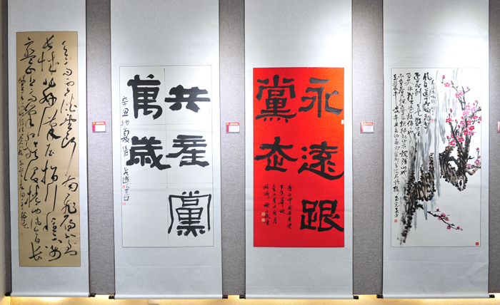 艺术作品展由院党委宣传部、工会、团委联合主办,美术与设计学院承办,是学院开展党史学习教育的重要内容,是庆祝中国共产党成立100周年系列活动之一,也是全院师生听党话、感党恩、跟党走的生动写照。据悉,活动自启动以来,全院师生员工热烈响应、积极参与。作者用画笔凝结党史学习的思与得,开展作品创作。本次展览共展出精选的60余幅技艺精湛、意蕴深厚的优秀艺术作品,汇集中国画、油画、水粉画、书法、篆刻等形式。作品紧紧围绕“奋斗百年路 启航新征程”这个主题,思想精深、艺术精湛、制作精良,都是学院师生的力作。虽然创作者的专业背景不同,艺术风格各异,但其作品中所饱含的对党的赤子之情、拳拳之心是相同的。他们用自己的笔墨丹青,展示党的辉煌历史、伟大民族精神、鲜明时代特征,为时代画像、为时代立传、为时代明德,向党的百年华诞献礼。