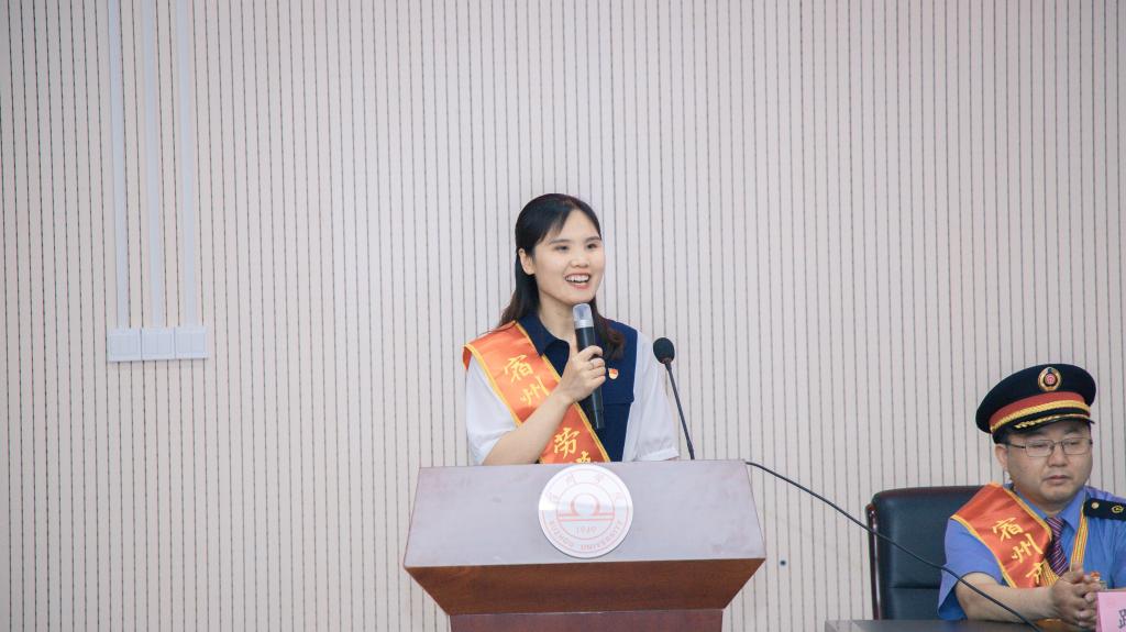 劳模精神、劳动精神、工匠精神是以爱国主义为核心的民族精神和以改革创新为核心的时代精神的生动体现,是鼓舞全党全国各族人民风雨无阻、勇敢前进的强大精神动力。6月10日下午,“弘扬百年精神谱系 ‘英模•大师’进思政课堂”主题报告会在宿州学院逸夫楼第二会议室举办。报告会前,宿州学院党委委员、副院长张英彦教授会见报告团成员。全国劳动模范、百丽鞋业(宿州)有限公司销售部经理马盼盼、安徽省劳动模范、宿州市公共交通有限公司8路线驾驶员张欠欠、安徽省劳动模范、灵璧县实验小学党支部书记、校长张锋应邀为师生做主题报告。报告会由宿州学院马克思主义学院党总支书记赵国付主持。马克思主义学院院长李玉才,宿州市劳模协会秘书长程秀娟,宿州市总工会劳动和经济部付王杰,宿州市劳动模范、宿州市火车站客运值班员陆绮芳,思政课教师,部分学生代表参加报告会。