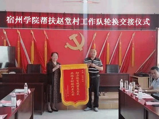 会上,赵堂村党总支书记尹超介绍了村整体发展情况,并向宿州学院赠送了锦旗。