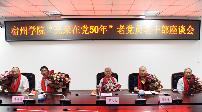 汪刘送强调,一是要继续尊重、关心、关爱老同志,让老同志们都能安居晚年。希望老同志们结合自身经历讲好中国共产党的故事、党的光荣传统和优良作风,立足学校实际,继续发光发热,贡献智慧力量。二是希望老同志一如既往地关心和支持学校的工作,坚持离岗不离党、退休不褪色,继续为学校各项事业的发展建言献策、发光发热。三是希望全校广大党员干部以老党员老干部为榜样,接续奋斗。要大力发扬红色传统、传承红色基因,赓续共产党人的精神血脉,传承和弘扬老党员老干部对党忠诚的政治本色,以受颁“光荣在党50年”纪念章的老同志为标杆和榜样,向他们学习,在致敬和传承中牢记初心使命,为实现“十四五”规划和建设宿州大学的目标积蓄精神力量。