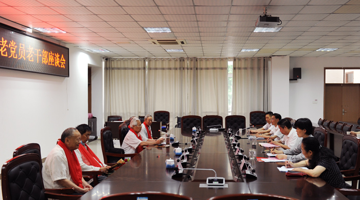 为庆祝建党100周年,深入推进党史学习教育,引导离退休老同志更加奋发有为地助力学校高质量发展,6月25日下午,我校在逸夫楼第一会议室召开“光荣在党50年”老党员老干部座谈会。校党委书记汪刘送,党委副书记、校长张莉,党委副书记蔡之让,郭民良、陈士奎、李庆德、陈庭栋、刘继续等5位符合颁发“光荣在党50年”纪念章条件的老党员老干部代表,组织部、工会(离退休工作处)等相关部门负责人及纪念章颁发对象所在党支部有关同志参加了座谈会。会议由蔡之让主持。