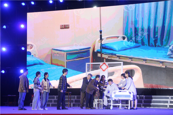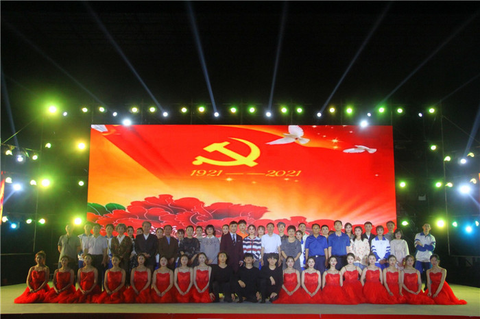 演出落幕后,领导上台和参加演出的师生亲切交流,对演出的成功表示祝贺,对大家的付出表示感谢,并与大家合影留念。