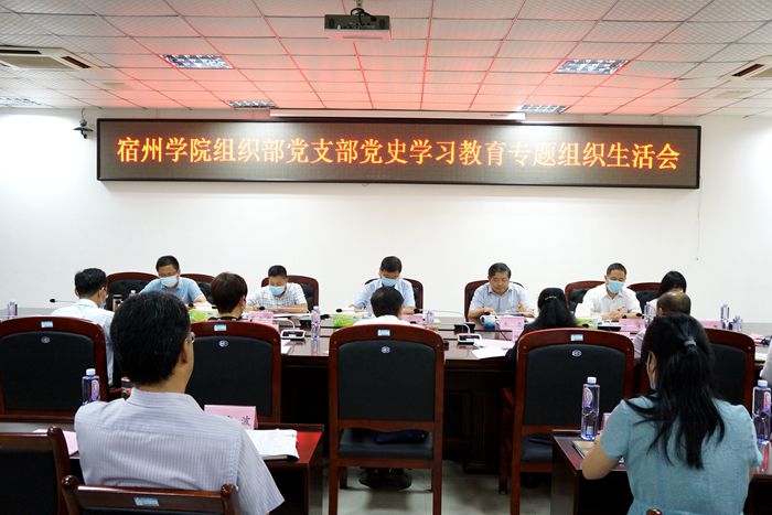 8月11日下午,组织部党支部在逸夫楼第一会议室召开党史学习教育专题组织生活会,省委党史学习教育第四巡回指导组组长、淮北市人大常委会主任方宗泽,副组长、安徽大学党委常委、纪委书记王忠,巡回指导组成员、淮北市人大常委会研究室副主任周金群、省广播电视局离退休工作处副处长许峰、合肥师范学院外国语学院副科级辅导员江洋、省纪委监委驻省委办公厅纪检监察组工作人员王黎到会指导。校党委书记汪刘送以普通党员身份参加了党史学习教育专题组织生活会。校党史学习教育领导小组办公室副主任、党委委员、宣传部部长李真及校领导所在党支部的部分机关党支部书记列席会议。会议由组织部党支部书记、组织部长陈啸吟主持。