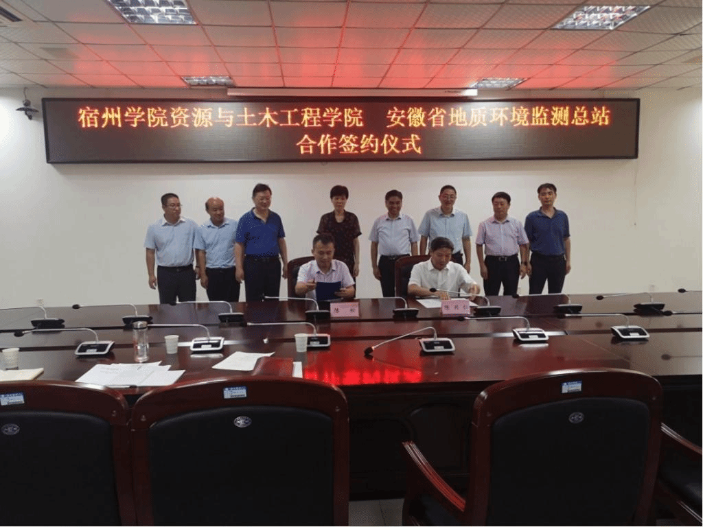陈兴仁和陈松分别代表安徽省地质环境监测总站和资源与土木工程学院签署了合作协议。