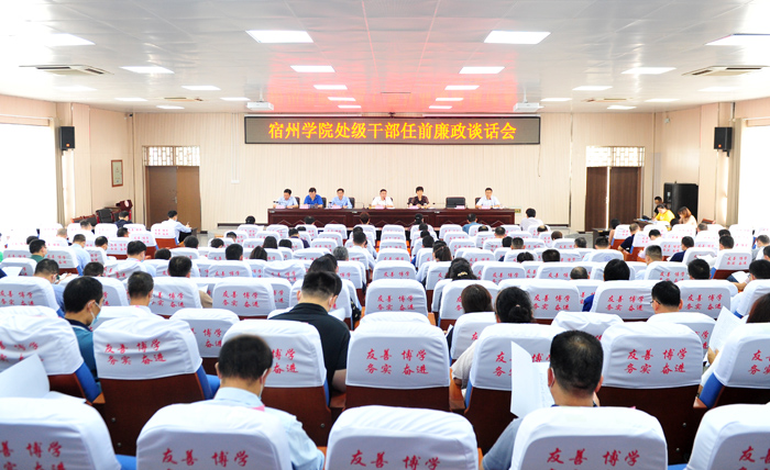 9月7日下午,宿州学院在逸夫楼第二会议室召开处级干部任前廉政谈话会,全体校领导、学校副处以上领导干部参加会议,校党委书记汪刘送主持会议。