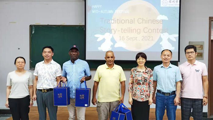 张雁凌与安晓斌先后向外教和现场的2021级新同学们致以中秋的祝福,勉励同学们认真学习,提升自己的跨文化交际意识与能力。接着外教Michael Kofie作为本次中国传统故事讲述大赛的首席评委向学生们讲解了英语学习的关键和提升表达能力的技巧。国际交流与合作处、外国语学院共同向外教们赠送了中秋月饼,表达了最为诚挚的节日祝福,希望外籍教师在中国工作愉快。