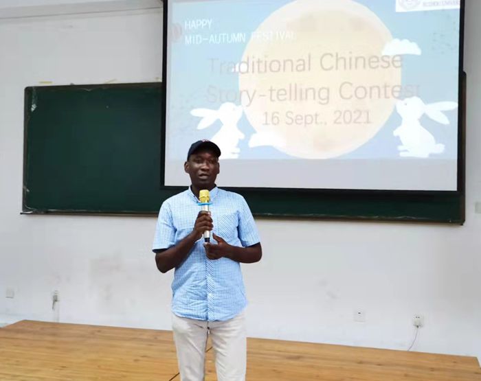 主持人介绍了比赛规则和注意事项后,大赛正式开始。外院选拔推荐的十组选手进入决赛,2021级新生近百人观摩。选手们分别从起源、传说人物、传统习俗和月饼制作等介绍中秋节和中国传统神话故事。评委对选手的表现进行了评分并颁发奖品。此次活动促进了师生沟通,增强了学生的跨文化交际能力,塑造了积极向上的学习氛围。