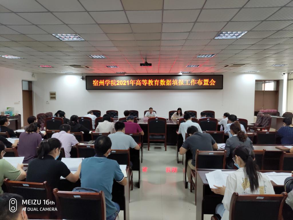 9月26日下午,我校在逸夫楼第一会议室召开宿州学院2021年高等教育事业统计和质量监测国家数据平台数据填报专题培训会议。校党委书记汪刘送、各有关职能部门负责人、各二级学院院长、数据采集员、审核员及发展规划处(教学质量监控与评估处)全体成员参加会议,会议由发展规划处(教学质量监控与评估处)处长方雪梅主持。