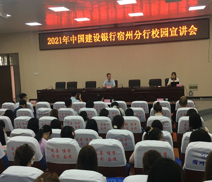 中国建设银行宿州市分行对我校就业服务工作水平给予了高度肯定,表示将与我校保持长期合作,进一步加深同我校学子间的沟通与联系。