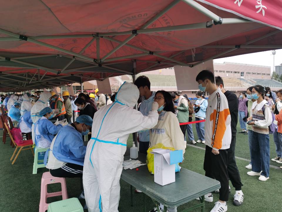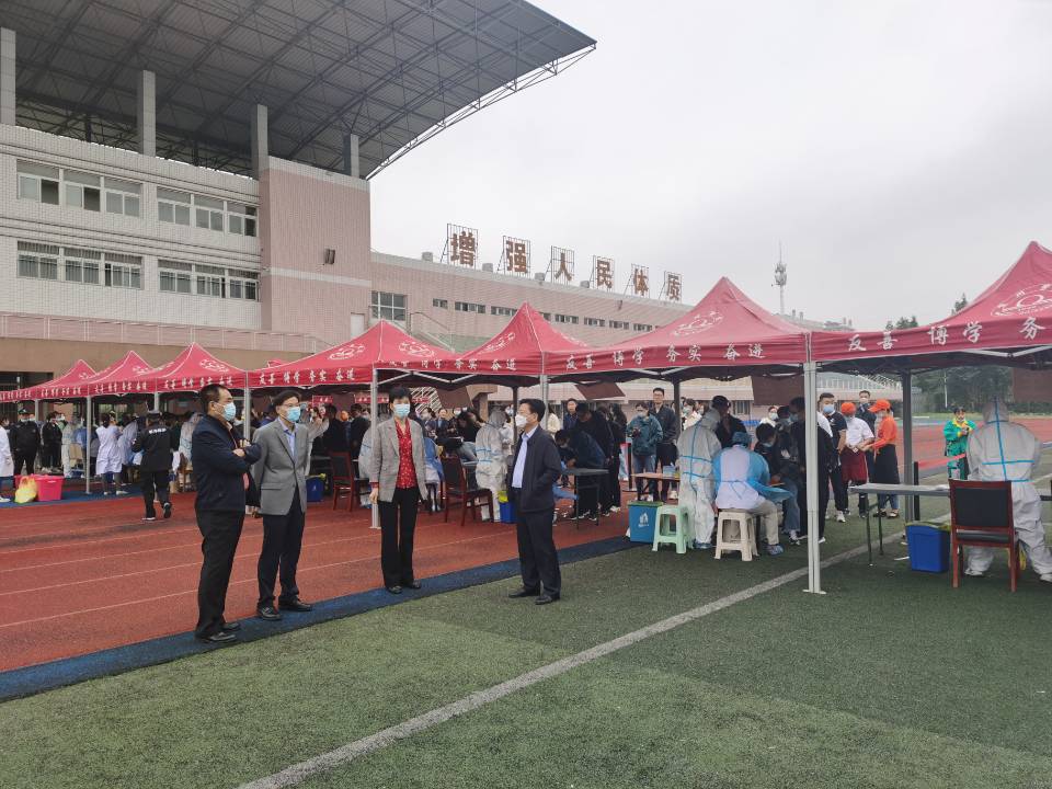 党委副书记、校长张莉,党委副书记蔡之让,党委委员、副校长李亮、张英彦、杨维志到现场检查指导检测工作,要求工作人员认真细致做好采样,办公室、学生处、后勤与基建管理处做好教职工、学生、后勤基建服务人员的组织工作,后勤与基建管理处做好现场检测组织协调与服务工作。采集现场平稳有序,全体在职教职工,在校内从事各类后勤服务、基建的人员,国庆假期有出省旅居史的学生3千余人进行了核酸检测。
