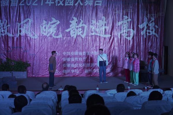 10月11日晚,由省委宣传部、省教育厅、省文化厅和旅游厅共同主办,宿州市坠子剧团承办的”2021年校园大舞台,徽风皖韵进高校活动”在宿州学院报告厅隆重举行,来自宿州市剧团的艺术家为全校师生带来了经典坠子戏《桃李春风》剧目演出。