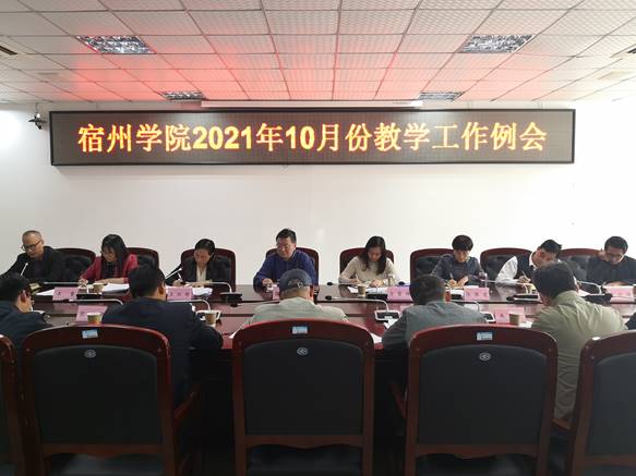 10月12日下午,我校2021年10月份教学工作会议在逸夫楼A楼第一会议室召开,党委委员、副校长张英彦,各二级学院、发展规划处、国有资产与设备管理处、教务处相关负责人参加会议,会议由教务处处长王红艳主持。
