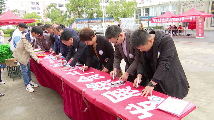 活动现场,后勤与基建管理处印制了2021年世界粮食日和全国粮食安全宣传周签名横幅,吸引了大量学生的关注和响应。埇桥区粮食和物资储备中心精心制作了一些爱粮节粮宣传展板和宣传材料,并邀请专家现场为我校师生讲解爱粮节粮、营养健康知识。同学们在工作人员的引导下,井然有序地在横幅上签名留念。其间,杨维志、各职能部门相关负责人也认真观看了本次活动的宣传挂图,并在横幅上郑重地签上自己的名字。