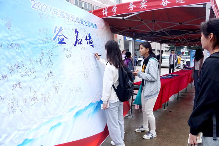 10月11日至17日是国家网络安全宣传周。宣传周期间,我校深入学习贯彻习近平总书记关于网络强国的重要思想,开展系列宣传教育活动,加强网络信息安全教育宣传,进一步提升师生网络安全防护能力,不断推动校园网络信息安全建设。10月15日,由校办公室、宣传部、学工部、保卫部、团委联合主办的2021年网络安全宣传周主题签名活动在一食堂门口举办,校党委副书记蔡之让,副校长李亮,宣传部部长李真、团委书记凌峰、办公室副主任张万礼、保卫部副部长张晓聪及千余名学生参加了此次活动。
