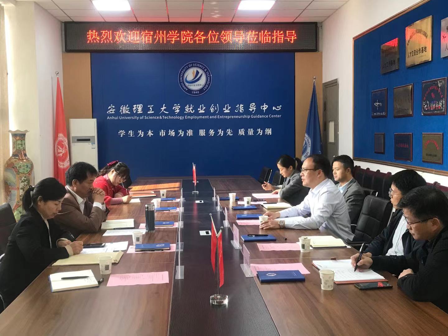 为进一步加强与兄弟院校的交流与合作,学习借鉴兄弟院校在招生、就业及校友工作方面的宝贵经验,10月28日至10月29日,宿州学院招生就业处(校友会办公室)处长杨刚等一行5人赴安徽理工大学、安徽科技学院开展调研交流。
