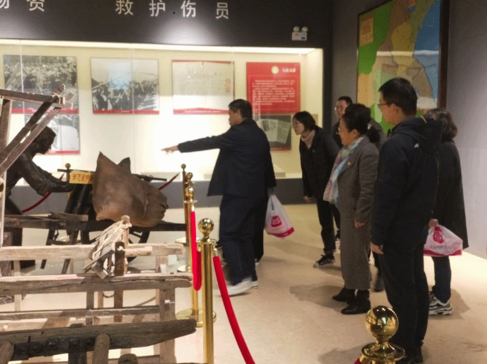 讲解员讲解结束后,在展厅里,汪刘送给党员们上了一堂生动的微党课。详细讲解了“淮海战役的胜利,是人民群众用小车推出来”的内涵,阐释了“小推车”精神的历史启示。“小推车”故事,是人民力量的最好诠释,淮海战役的胜利生动体现了“战争伟力之最深厚的根源存在于民众之中”。“最后一把米,用来做军粮,最后一尺布,用来做军装,最后的老棉被,盖在担架上,最后的亲骨肉,含泪送战场。”老百姓们正是唱着这样的歌谣、推着小推车勇往直前冲向战场。汪刘送要求,大家要重温习近平总书记考察安徽时的重要讲话精神,深刻理解习近平总书记在参观渡江战役纪念馆当时提出的“淮海战役的胜利是靠老百姓用小车推出来的,渡江战役的胜利是靠老百姓用小船划出来的。任何时候我们都要不忘初心、牢记使命,都不能忘了人民这个根,永远做忠诚的人民服务员。”这段话真谛。这让我们深刻体会到相信人民、依靠人民,是淮海战役胜利的力量之源,让我们加深了对“江山就是人民、人民就是江山"的理解。