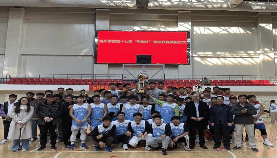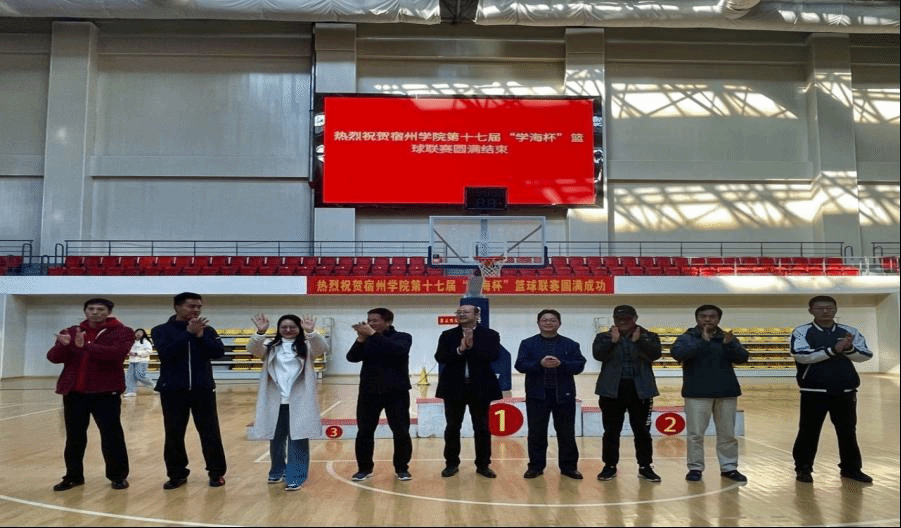 11月11日下午,宿州学院第十七届“学海杯”篮球联赛圆满闭幕。体育学院党委书记李高、院长白明、副书记王德玉,团委书记凌峰,裁判长李贺以及相关学院负责人等参加闭幕式,并为获奖队伍颁奖。
