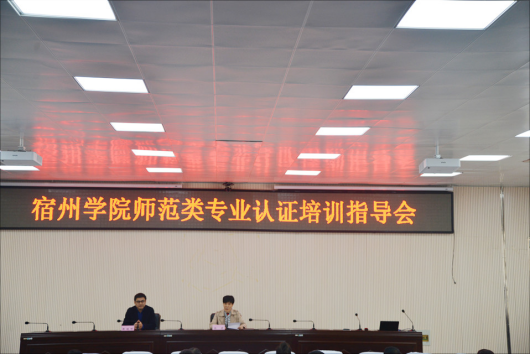 11月20 日下午,为进一步推进我校师范专业认证工作,提升我校师范专业建设水平,进一步把握理解师范类专业认证新要求,学校在逸夫楼第二会议室召开师范类专业认证培训指导会。安徽师范大学教务处处长、博士生导师周端明教授应约做专题培训指导报告。我校各相关二级学院院长、副院长、师范专业带头人、师范专业教研室主任和副主任、教学秘书、教务员、师范专业任课教师代表、教务处全体人员到场参加培训。会议由校长张莉主持。