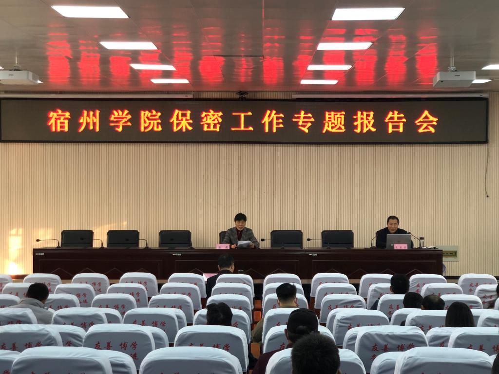 为适应保密工作的新形势、新要求,进一步强化保密工作纪律,加强我校涉密人员保密意识和保密常识教育,提高做好保密工作的能力和水平,12月9日上午,学校邀请宿州市委保密委专职副主任、市委保密委办公室主任、市国家保密局局长孔庆宇同志来校作保密工作专题报告。在校校领导,各二级单位党政主要负责人,各二级单位兼职保密员参加会议,报告会由党委副书记、校长张莉主持。