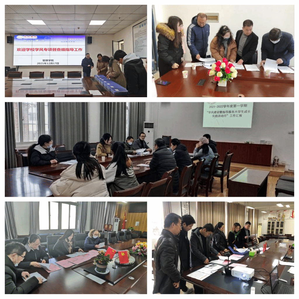 12月13日开始,教务处处长王红艳,发展规划处处长方雪梅,团委书记凌峰,学工部部长李月云,学工部副部长贾学彬带领各组组员走访十四个二级学院,听取各学院学风建设工作汇报,了解各学院特色工作,抽查各学院班级,检查学风班风情况,截止12月17日,期末学风专项督查工作圆满结束。