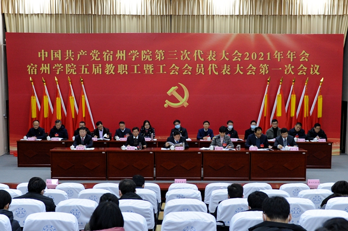 12月25日下午,中国共产党宿州学院第三次代表大会2021年年会、宿州学院第五届教职工暨工会会员代表大会圆满完成各项议程,在教学楼报告厅圆满闭幕。