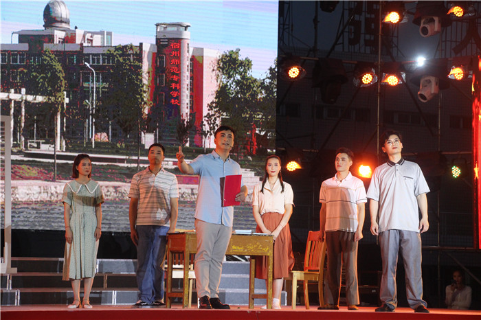 打造特色活动。创新自选动作,自编并在全市公演大型泗州戏《当代楷模——孟二冬》;开辟学习教育新阵地,举办中国共产党人精神谱系展览、党的十九届六中全会精神展览,举办庆祝建党100周年文艺演出,合唱比赛,师生同台唱红歌,上演别样思政课。凝练打造“英模•大师进思政课堂”“红色经典诵读”“党课开讲啦”等特色品牌,推动党史学习教育有声有色。