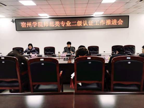 最后,校长张莉提出了四点要求:一是要高度重视师范类专业二级认证工作。要对学校的办学条件、质量检测数据进行认证研读,综合研判,深挖教师资格证通过率低的原因,找出对策,加强专业内涵建设,有效提高人才培养质量。二是要系统设计认证步骤。使专业二级认证工作有进展,要对整个认证工作做好系统设计,整合目前学校的教学资源,统筹推进认证工作;各职能部门要按照时间节点按时保质保量完成《宿州学院师范类专业认证工作实施方案》中的任务,并在每月召开的推进会上汇报工作任务完成情况,确保认证工作保质保量完成。三是要对标对表整体推进。各职能部门和二级学院要针对师范专业认证工程中存在的问题,及时“对症施策”。四是要借鉴、吸收其他高校的认证经验。加强与已通过认证的高校联系,学习认证经验;及时出台认证相关文件,补齐短板,确保认证工作有序推进;其他专业也要按照师范类专业认证标准进行专业建设,切实提高我校师范类专业人才培养质量,为我校“两个建成”添砖加瓦!