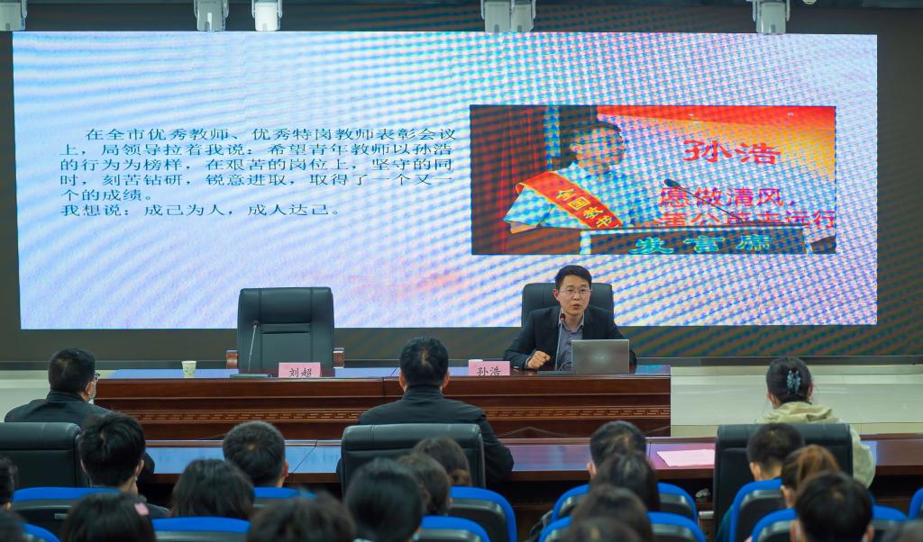 报告会上,孙浩以《不忘初心记使命砥砺前行守信念》为题,从努力成为爱岗敬业、甘于奉献的人,努力成为终身学习、勤于实践的人,努力成为勇于担当、敢于创新的人,努力成为生命不止、奋斗不息的人四个方面为师生作了先进事迹报告。