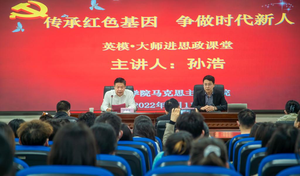 汪刘送对孙浩老师表示衷心感谢和热烈欢迎。汪刘送指出,思政课的本质是讲道理。开展“英模·大师”进思政课堂活动是贯彻落实习近平总书记重要讲话精神的具体举措,通过英模报告会等学生喜闻乐见的方式推进思政课教学改革,教师用心教、学生用心悟,把道理讲深、讲透、讲活,达到沟通心灵、启智润心、激扬斗志。