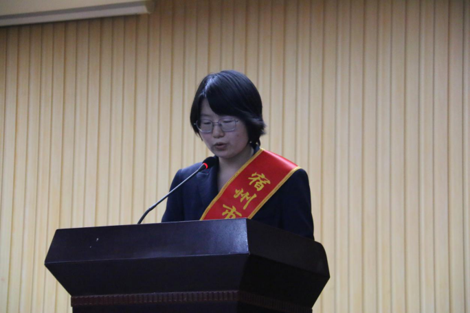 报告会上,宿州市第二人民医院病区护士长王伟伟、灵璧县建绿飨园现代农业有限公司总经理朱若玉和国网宿州供电公司带电作业班副班长许启金分别作了事迹报告宣讲。
