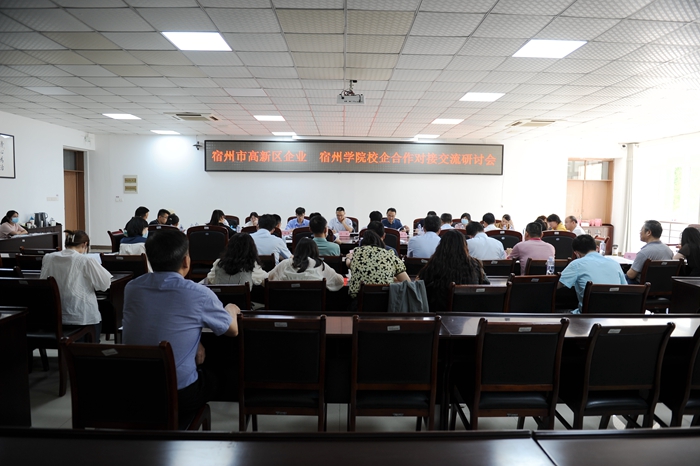 为扎实推进“访企拓岗促就业”专项行动,畅通供需对接渠道,深化校地、校企合作,5月30日下午,宿州市高新区就业办主任巨松、副主任吕晓明及13家高新企业应邀来院参加校企合作对接交流研讨会。党委委员、副院长杨维志出席会议并讲话,招生就业处、科研处等行政部门负责人,各二级学院党委书记、学生事务管理科科长等参加了会议。