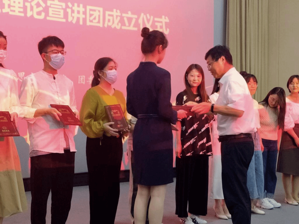 王俊为校院级宣讲团指导教师颁发聘书并讲话。他指出,理论宣讲是党的方针政策执行到位的根本保证,是新时期传播党的创新理论成果的有效途径和重要载体。他强调,成立大学生理论宣讲团,就是要整合大学生党史宣讲力量,推动大学生将党史学习与实践相结合,激励更多青年学子知史爱党、知史爱国,传承红色基因,勇担青年使命。他希望,各宣讲团成员一是要认清责任。切实增强紧迫感、使命感,充分发挥理论宣讲“扩音器”的作用,把理论宣讲不断推向深入,用党的创新理论成果引导广大同学做有信仰有追求有梦想的现代青年。二是要发挥作用。紧紧围绕迎接宣传贯彻党的二十大,广泛宣传党和人民创造的新作为新业绩。要增强宣讲工作的针对性和实效性,用同学喜闻乐见的形式宣传党的路线、方针、政策,让复杂高深的理论变得通俗易懂;要创新宣讲形式,让宣讲工作更具吸引力和感染力,让广大同学“坐得住、听得懂、愿意听、记得牢、用得上”。三是要提高水平。加强学习,不断增长脑力;注重锻炼,增长笔力;把握方向,增长眼力。各职能部门要加大对宣讲团的培训、指导,关心、关爱,群策群力,把大学生理论宣讲团打造成为青年学生坚定理想信念,淬炼党性修养的重要载体和响亮名片。