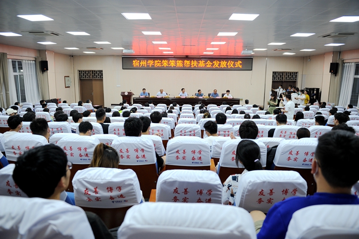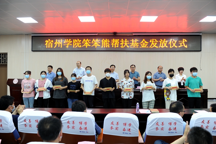 宿州学院笨笨熊帮扶基金,是由宿州学院后勤与基建管理处协调、杭州笨笨熊餐饮有限公司设立的专项助学金。本次发放金额近60万元,共有797名同学获得爱心资助。