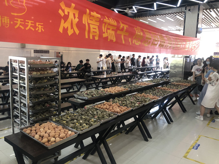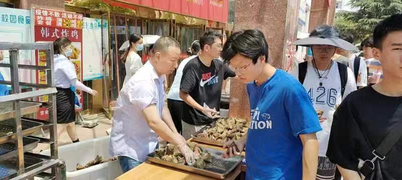 上午11:00,各食堂已是热闹非凡。一位正在打饭的同学说:“感谢学院为学生考虑得这么周到,饭菜价格如此实惠,粽子又很美味,让我们在校也能感受到节日的氛围。”