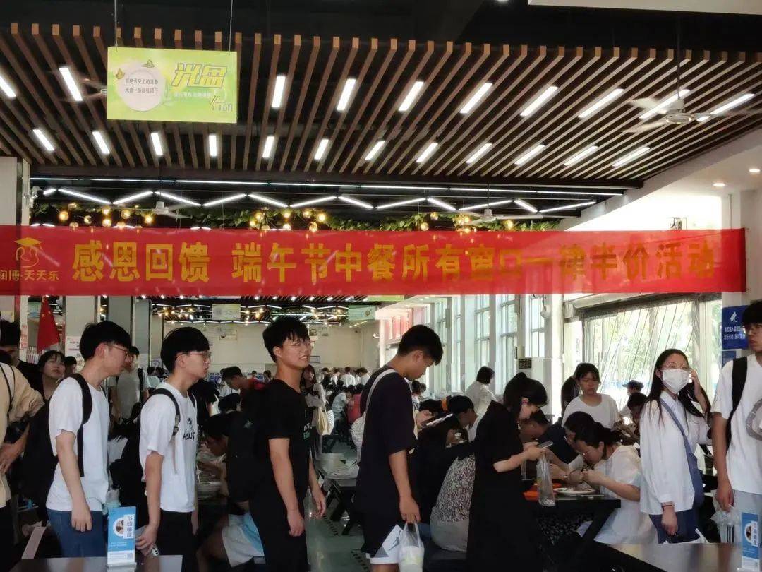 继“五一”劳动节期间连续两天中午的半价优惠活动之后,6月3日中午,学院三个食堂所有窗口的饭菜、饮品再次半价销售,同时免费赠送一个粽子。