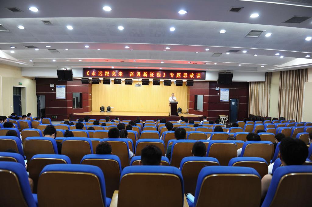 6月2日晚上,校党委书记汪刘送在工科楼一楼招聘大厅为信息工程学院师生上主题为《永远跟党走 奋进新征程》的专题思政课。