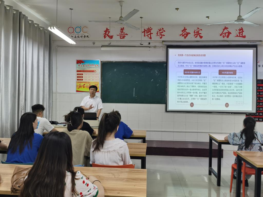 6月3日下午,院党委委员、纪委书记、监察专员王俊在艺术楼B305多媒体教室宣讲党的十九届六中全会精神,美术与设计学院教师代表、学生党员、入党积极分子代表、学生会干部参加宣讲会。宣讲会由学院党委书记陈述立主持。