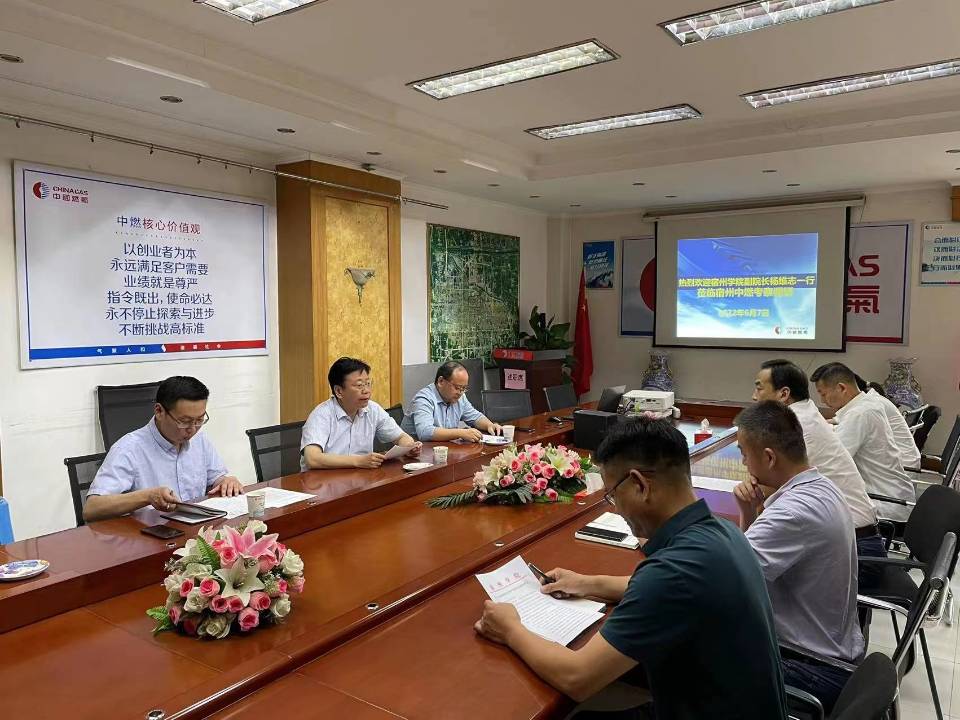 陈勇代表中燃城市燃气发展有限公司对宿州学院一行到来表示欢迎,同时还简要介绍了中燃公司的业务范围、平台建设及发展规划。今后,中燃公司还将进一步拓展深化与宿州学院的合作。