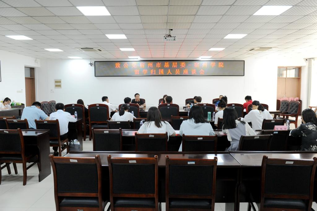 周淑景对我院留学归国人员工作给予了充分肯定。他表示,今后将进一步加强与宿州学院的沟通与交流,充分发挥宿州学院各民主党派、无党派人士和留学归国人员在参政议政、民主监督、建言献策方面的重要作用,为宿州市经济社会发展贡献更多统战力量。