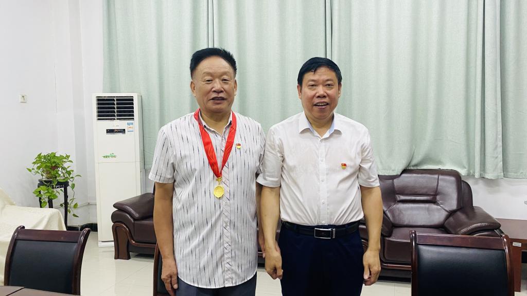 7月5日上午,我院2022年“光荣在党50年”纪念章颁发仪式在西校区信息楼一楼办公室举行。院党委书记汪刘送,“光荣在党50年”党员李其华、黄德源,组织部部长陈啸吟、数统学院党委副书记陈攀峰、组织部副部长王淑霞参加颁发仪式。