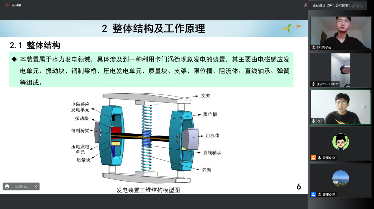 按照疫情防控要求,决赛采用线上与线下相结合的方式,参赛队员将围绕主题进行线上答辩,参赛作品在云展厅进行展示,评审专家进行线下评审。经过线上答辩、专家主审、小组讨论、评审合议、线上展示等环节,我校参赛项目获三等奖2项,未来水下能源动力挑战赛铜奖1项。