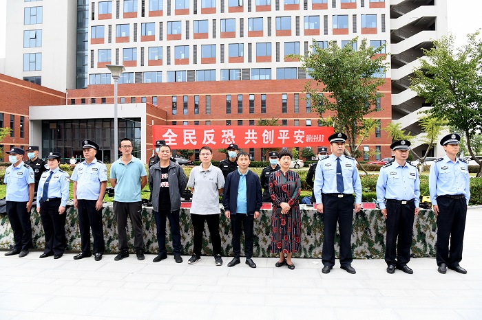 9月20日上午,我院联合宿州市公安局开展反恐宣传和演练活动。本次活动由宿州市反恐办主办,宿州市公安局反恐支队、宿州市公安局埇桥分局国保大队、特(巡)警大队、铁骑大队、朱仙庄派出所,宿州市教体局参与,宿州学院承办。