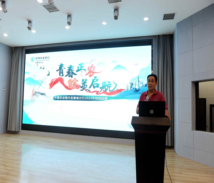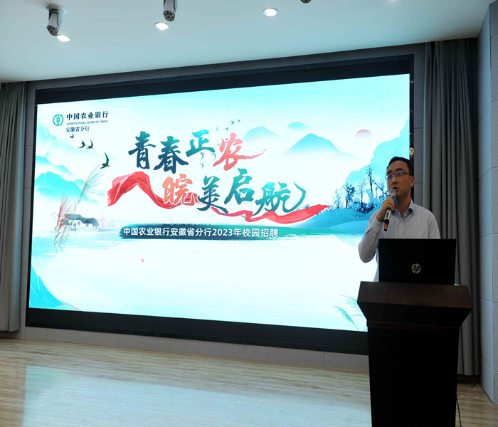 中国农业银行宿州分行党委书记、行长张昊介绍了农业银行的概况、发展前景、人才培养体系、工作环境和薪酬福利等,鼓励同学们找准定位,选择适合自己的岗位。宣讲组负责人结合PPT详细介绍了农业银行的招聘计划、职位、招考流程等,帮助毕业生更加全面深入地了解农业银行。中国农业银行安徽省分行2023年度为毕业生提供管理菁英岗、科技人才岗、管理及科技岗、业务经理岗、客户经理岗等就业岗位580个。现场气氛热烈,秩序井然,毕业生主动报名参与,积极与银行负责人面对面交流。