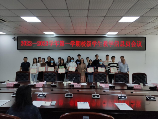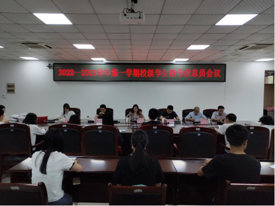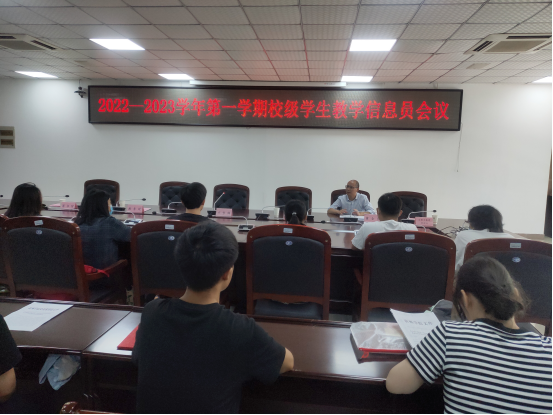 9月22日下午,2022—2023学年第一学期校级学生教学信息员会议在逸夫楼第一会议室召开,教务处副处长唐永刚、发展规划处副处长董全德、后勤与基建管理处副处长周霁野、党委学生工作部副部长贾学斌、图书馆武莉科长、发规处陶兴魁科长和新老两届校级学生教学信息员参加会议,会议由发规处处长方雪梅主持。