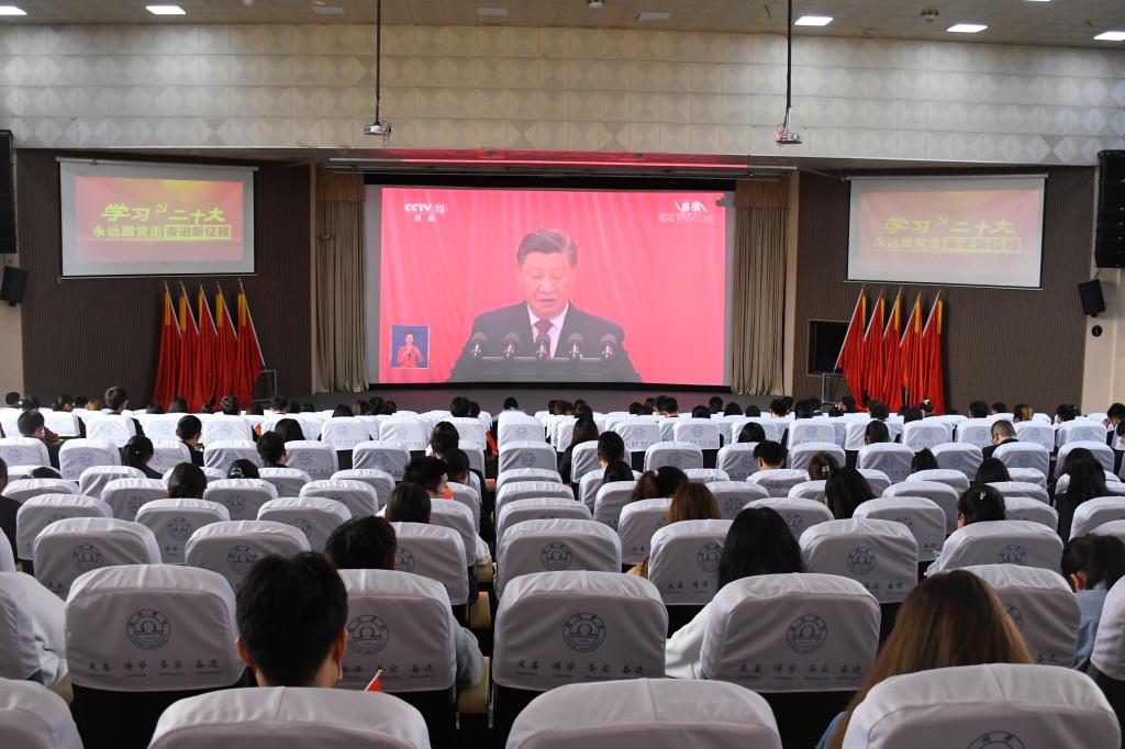 院领导汪刘送、李福华、李亮、王俊、杨维志,各职能部门主要负责人、各二级学院党政主要负责人在逸夫楼第一会议室集中收看了党的二十大开幕会;学生代表在大学生活动中心集中收看了党的二十大开幕会;各二级党委、各单位(部门)组织师生在会议室、办公室、教室、宿舍、食堂等场所收看了党的二十大开幕会。收看过程中,秩序井然,大家认真聆听、学习习近平总书记所作的报告,边听边记。