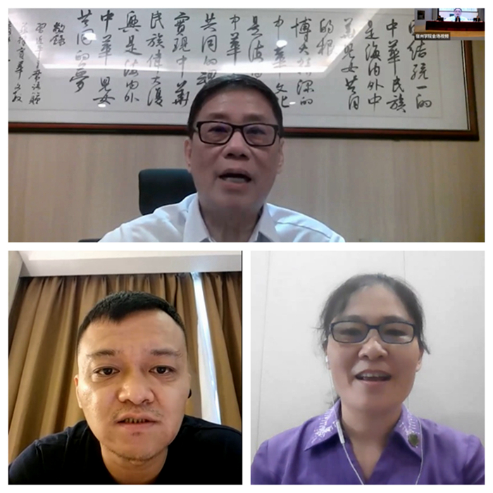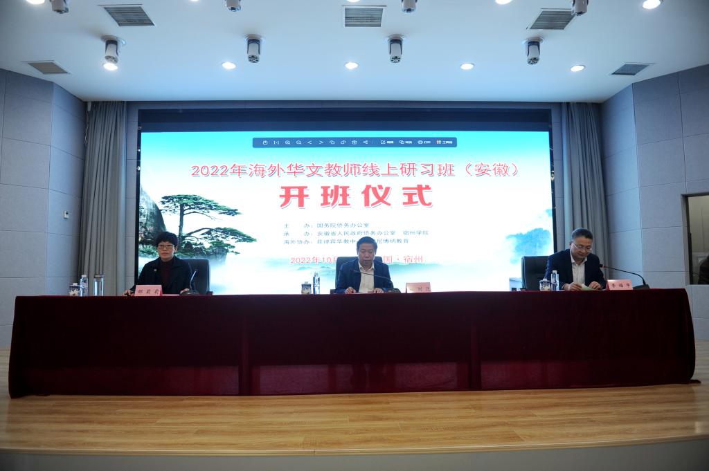 为进一步推动海外华文教育发展,提升华文教师的综合素养,10月25日,由国务院侨办主办,安徽省侨办和宿州学院共同承办,菲律宾华教中心、印尼博纳教育协办的“2022年海外华文教师线上研习班”开班仪式在我校举行。仪式采用线上线下相结合的方式举行。院党委书记汪刘送,院党委副书记、院长李福华、宿州市委统战部副部长邰莉莉等出席线下仪式。安徽省侨办二级巡视员、侨务工作处处长周立新,副处长黄礼杰,菲律宾华教中心主席黄端铭,印尼博纳教育董事长何涛等嘉宾线上参加了仪式。院党委统战部、办公室、国际交流与合作处等相关职能部门负责人参加仪式。仪式由李福华主持。