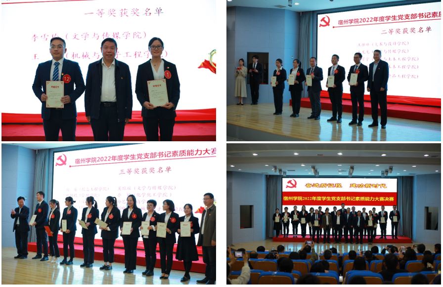 为学习宣传贯彻党的二十大精神和党章内容,贯彻《中国共产党普通高等学校基层组织工作条例》《中国共产党支部工作条例(试行)》等文件精神,切实提升学生党支部书记的履职能力,全面考察党支部书记的素质能力。11月4日,学院在工科楼招聘大厅举办“奋进新征程 建功新时代——2022年度学生党支部书记素质能力大赛决赛”。学院党委书记汪刘送,党委副书记、院长李福华,党委委员、纪委书记,监察专员王俊,党委委员、副院长杨维志,院党建工作领导小组成员,二级学院党委书记、专职组织员、全体学生党支部书记及学生党员代表等到现场观看比赛。